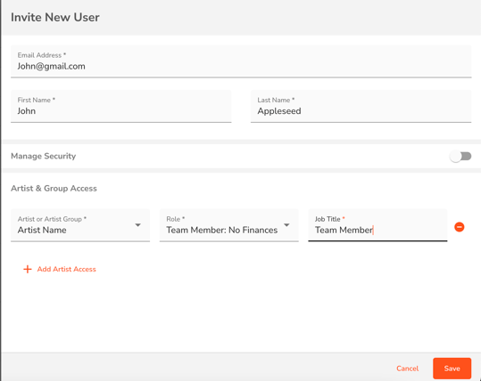 Easily add new team members to your artist's account and manage their access permissions.