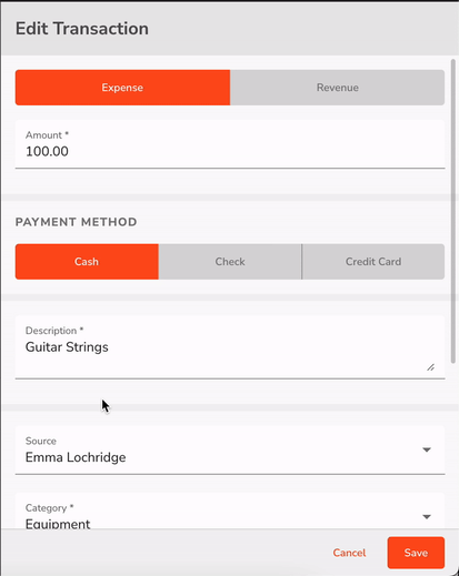 5. Fill out the Expense or Revenue. Make sure you select the correct type of transaction!