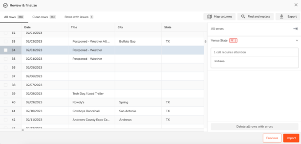 - Before importing, you'll be prompted to review your file to check for any formatting issues