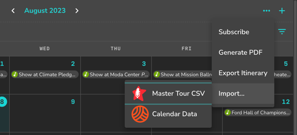 How to Upload Calendar Data from Master Tour or a Spreadsheet