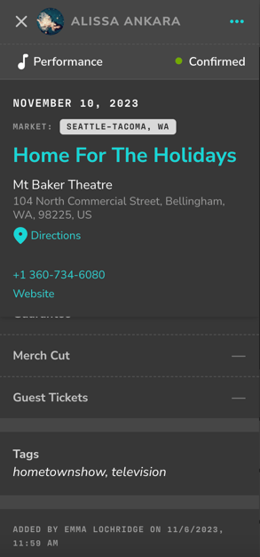 Tags are an excellent way to organize events by tour, venue type, event category, or any other system that works for your workflow.