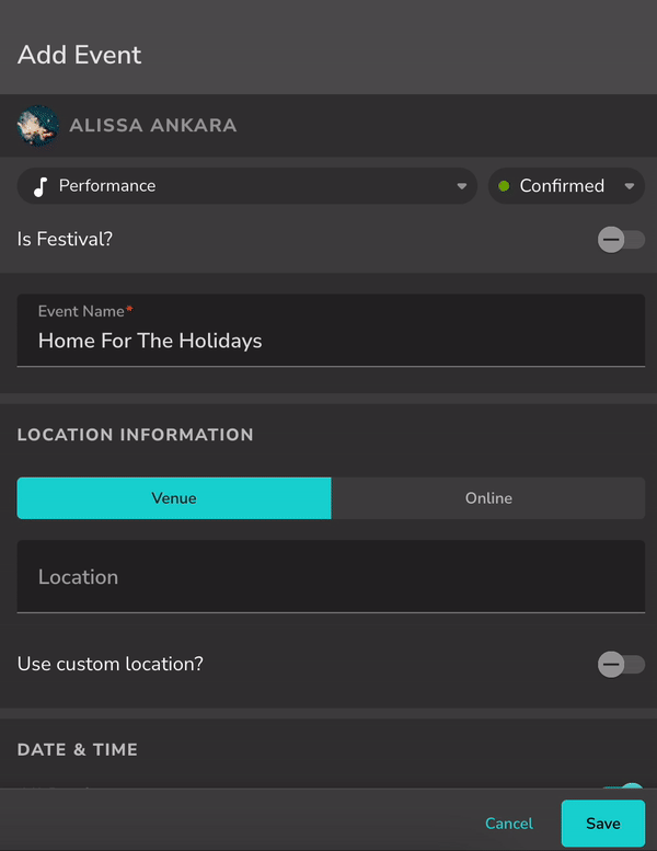 When Creating a New Event: