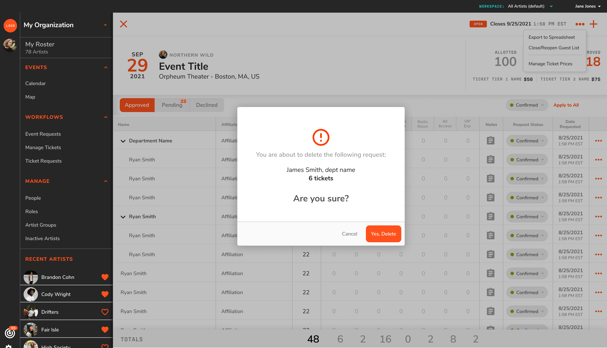 - Navigate to your Artist: Use the Context Switcher and select the Artist you'd like to manage tickets for