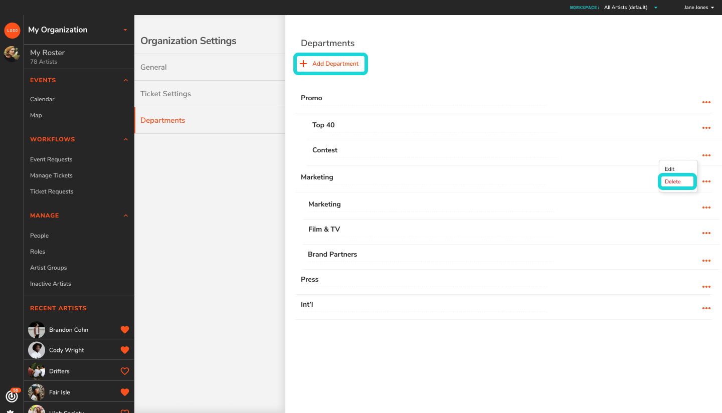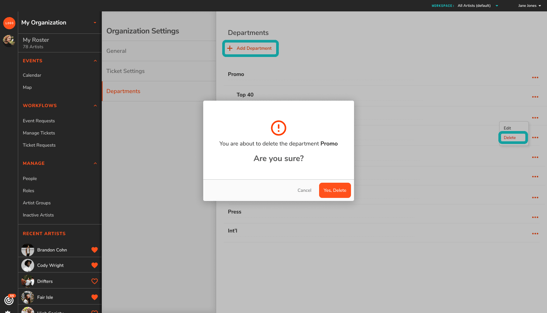 Setting up departments is essential if you want to use Artist Growth's Ticket Buy feature. When team members submit ticket requests, they'll need to select their department or sub-department before submitting their request.
